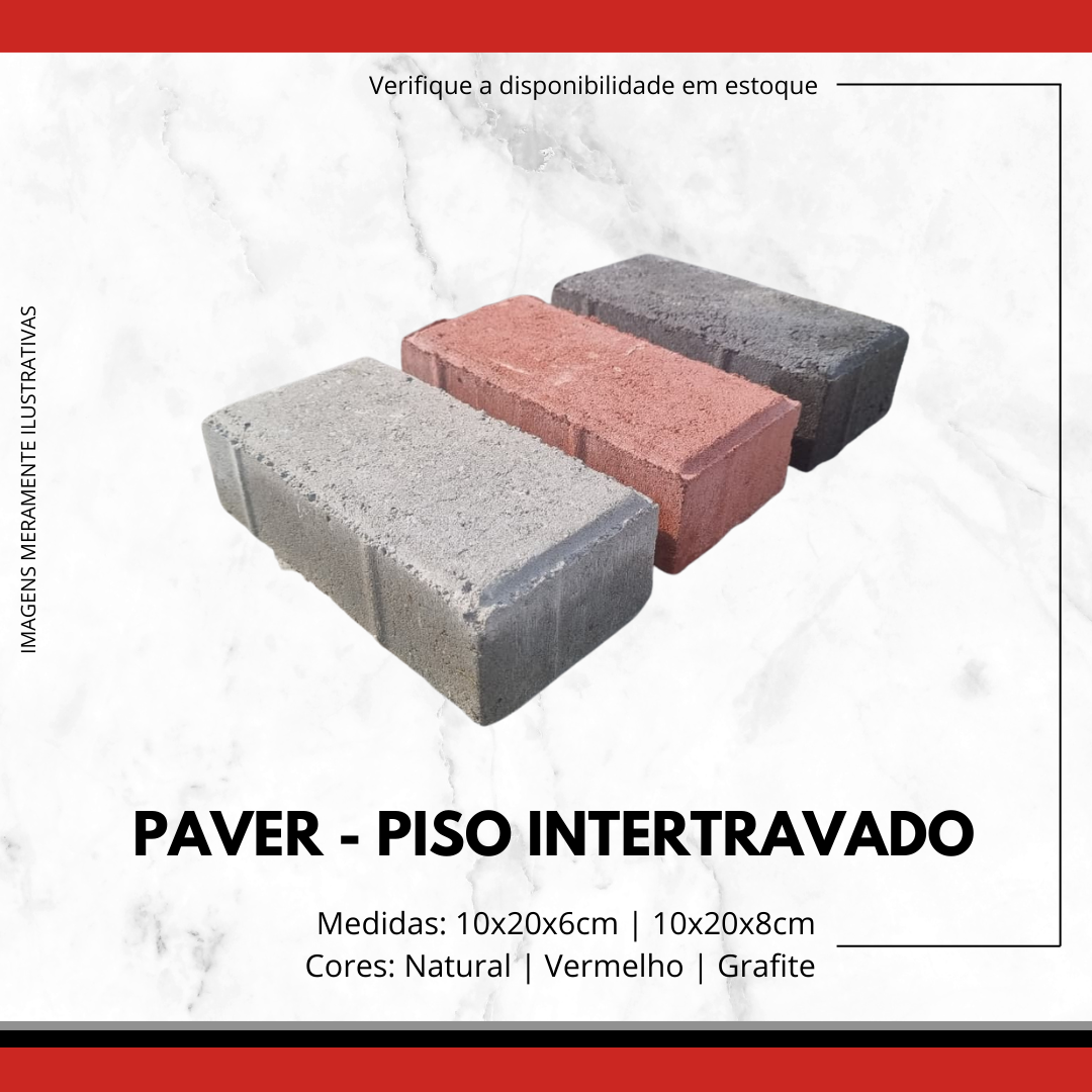 - O paver de concreto, também chamado de piso intertravado, é ideal para pavimentação de calçadas, estacionamentos, ruas, praças e áreas externas em geral. Com encaixe perfeito entre as peças, dispensa o uso de argamassa, sendo resistente, durável e de fácil manutenção. Além de proporcionar um acabamento moderno e elegante, o paver é sustentável, pois permite a drenagem da água da chuva, ajudando a evitar alagamentos e colaborando com o meio ambiente. Disponível em diversos formatos, cores e espessuras, é a solução ideal para quem busca qualidade, praticidade e valorização do espaço.